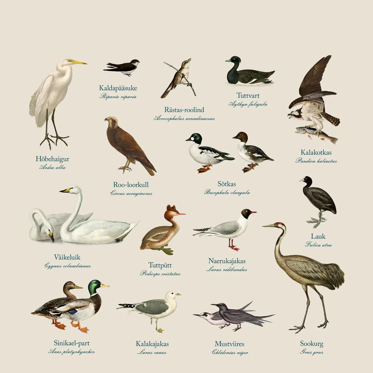 Neli pimendavat rulood suuruses 200x200 cm tutvustavad Emajõe ja Peipsi veestiku linde, kalu jt loomi ning taimi - ruloodel on kujutatud pildiline materjal ja nii eesti kui ladinakeelne nimi.